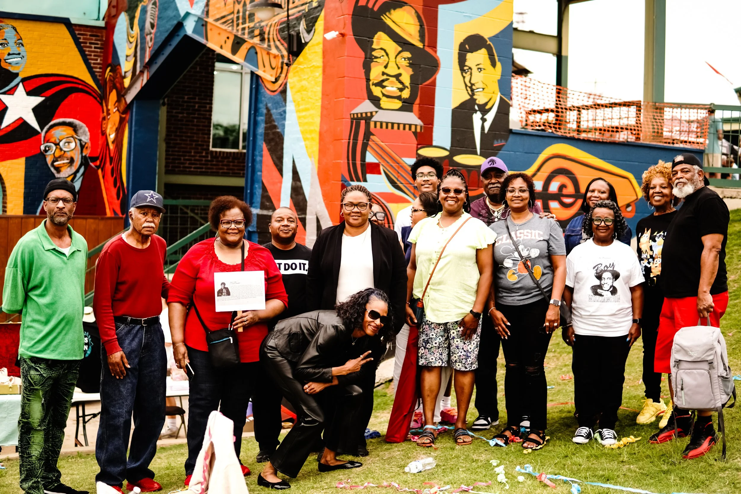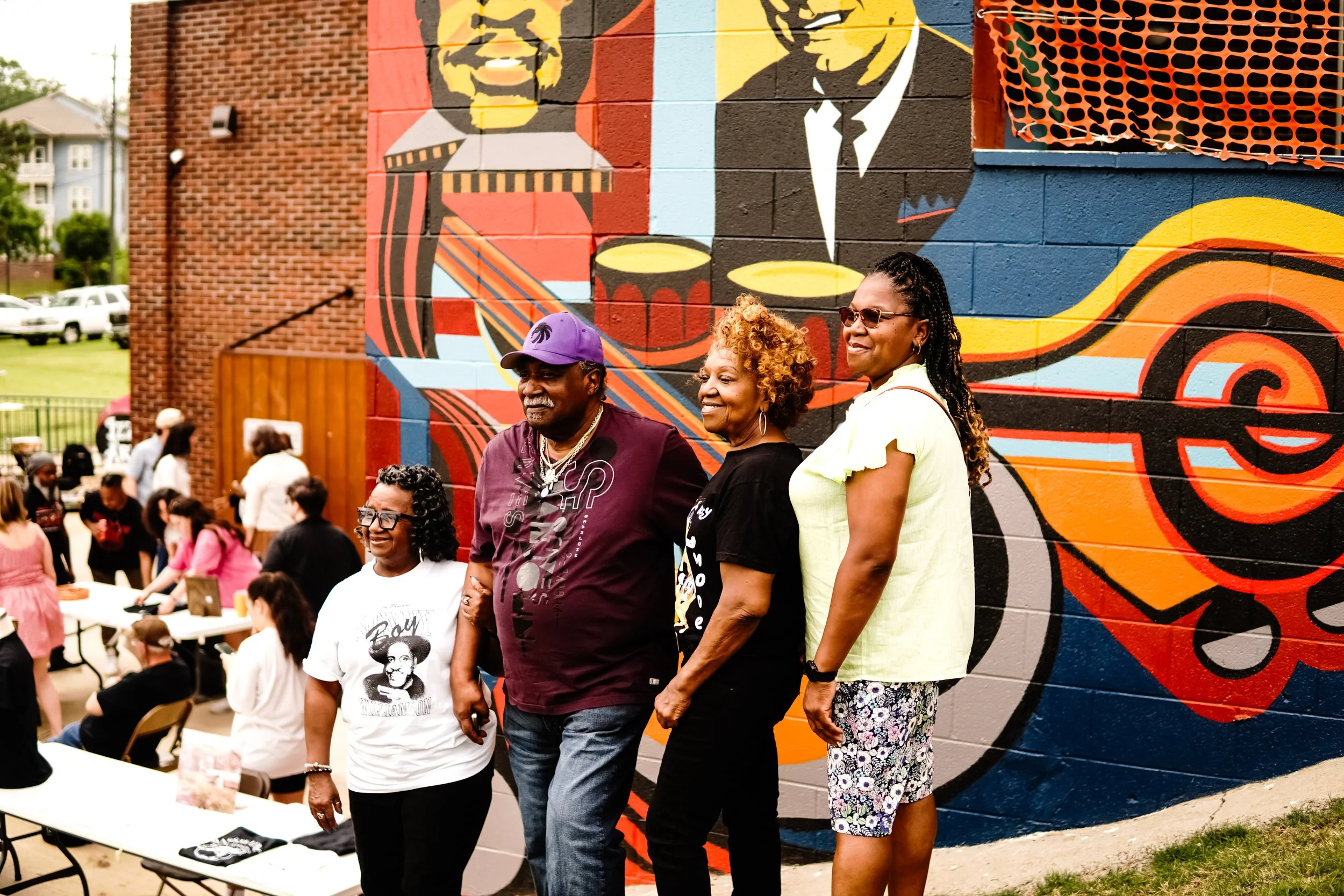 On the Northwest facade of the outer wall of the stage, a bold mural showcasing eight musicians - the original lissiers of Jackson’s diverse soundscape - faces south, buttressing the present and future of live music in Jackson.
