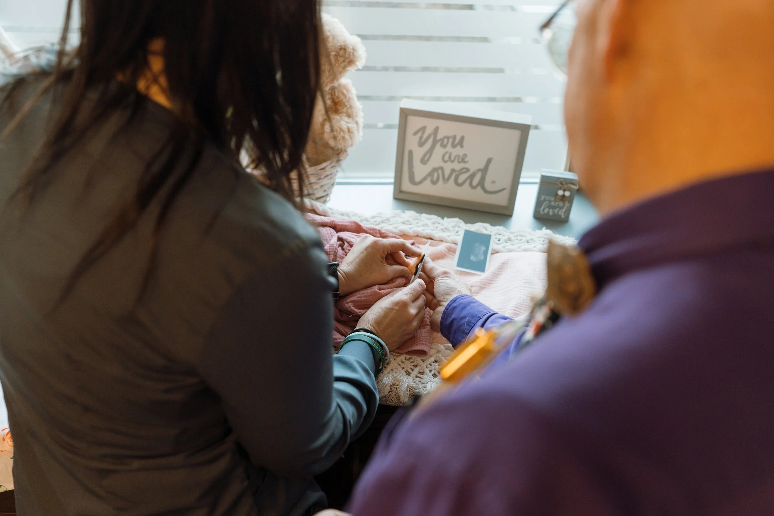 After delivery, the focus shifts to memory-making and continued emotional support. Families are encouraged to create lasting memories through photographs, handprints and footprints, foot molds, and including the siblings in keepsakes when appropriate. The team remains present throughout this process, offering guidance and modeling supportive interactions to help families feel more confident and supported as they begin to grieve. They are “creating a lifetime of memories in a very short amount of time,” as Tammy told me.