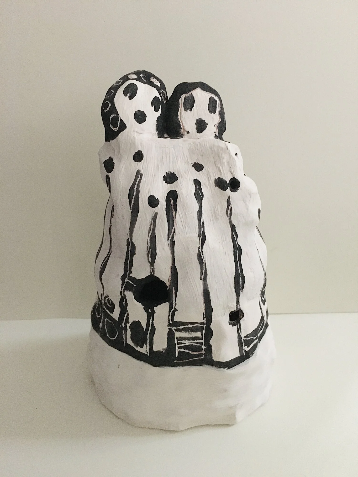 I rarely plan or sketch-–I prefer intuitive ways of working with paint and fabric. With clay, I normally have a visual idea of what I want. I often have a strong idea that sometimes weighs heavy on my head until I can finally make it.