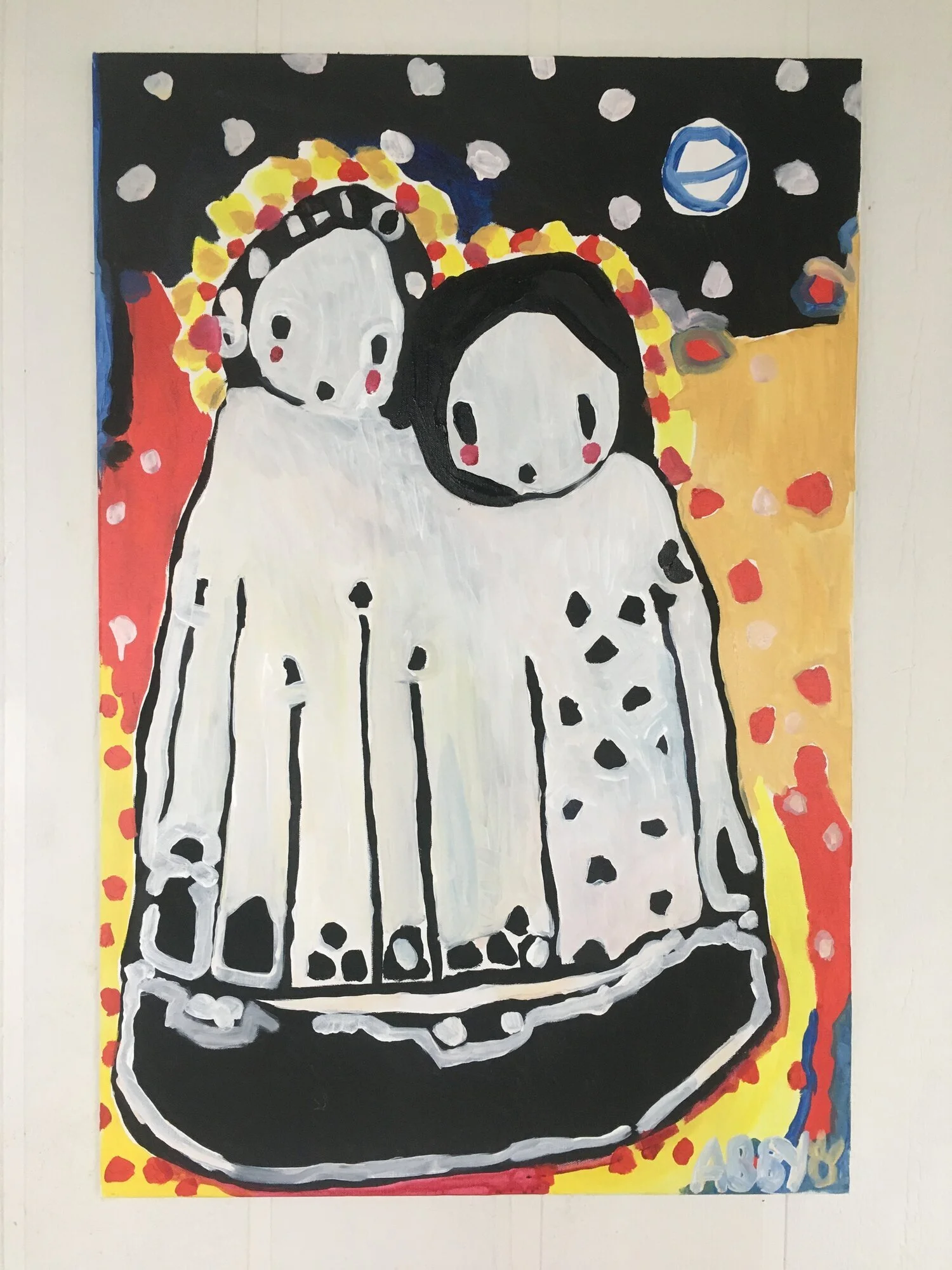 Abby Wolfzorn Ruby shares her process of creation, and it reminds me so much of what Julia Cameron says about feeding our inner child. Abby’s work is both playful and intuitive- she uses simple motifs and a limited color palette to create introspective work from her soul. Her process is about the explorative–something that really speaks to me about her work. There is a purpose to it that each piece carries. I truly believe that when an artist creates in a place of honesty with themselves, the art has a greater impact on the world. I hope you find Abby’s story an inspiration to feed your inner child and artist.