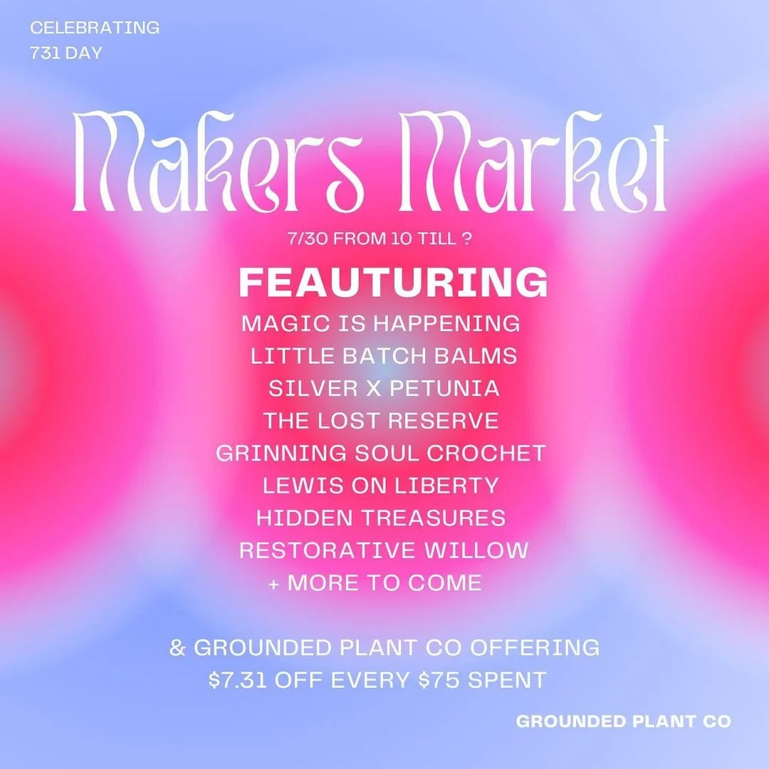I will be at Grounded Plant CO’s Maker’s Market on 7/30 to celebrate 731 Day. Every purchase (online and in person) between now and 7/31 will receive a free “731” branded lip balm.