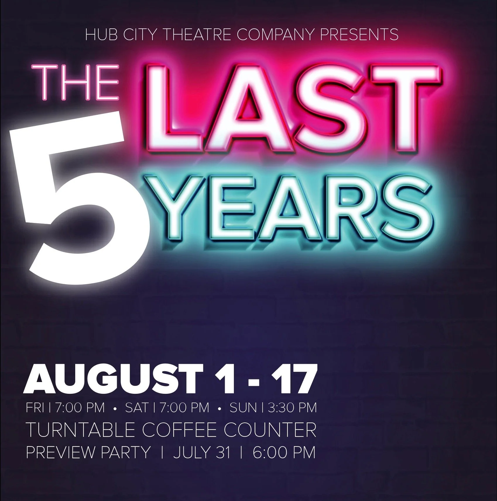 Hub City Theatre Company’s production of Last Five Years will be having a preview party on 7/31 at Turntable Coffee Counter. If you purchase a ticket and attend the preview party, you can get a tote bag for the price of $7.31!